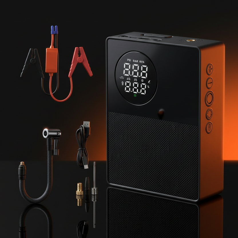 DuoForce: הפתרון המושלם לשני הסיוטים של כל נהג מה יותר גרוע: מצבר מרוקן או פנצ'ר באמצע הדרך? עם ה-DuoForce אתם מוכנים לכל תרחיש. מכשיר חירום עוצמתי המשלב בוסטר התנעה וקומפרסור דיגיטלי חכם ביחידה אחת. במקום להסתמך על טוב לבם של זרים, אתם נהנים מעצמאות מלאה ובטיחות מקסימלית.